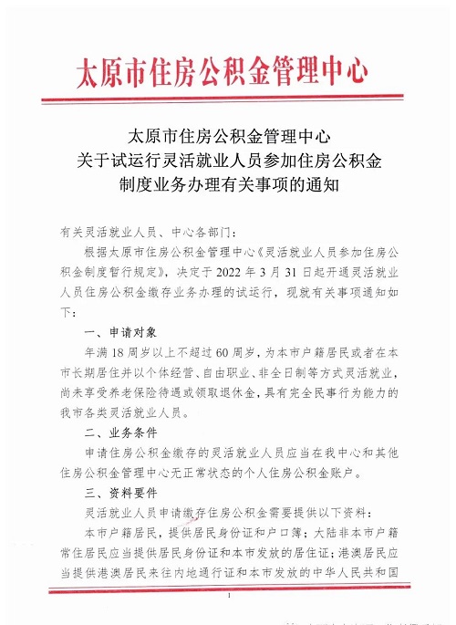 關(guān)于試運(yùn)行靈活就業(yè)人員參加住房公積金制度業(yè)務(wù)辦理有關(guān)事項(xiàng)的通知
