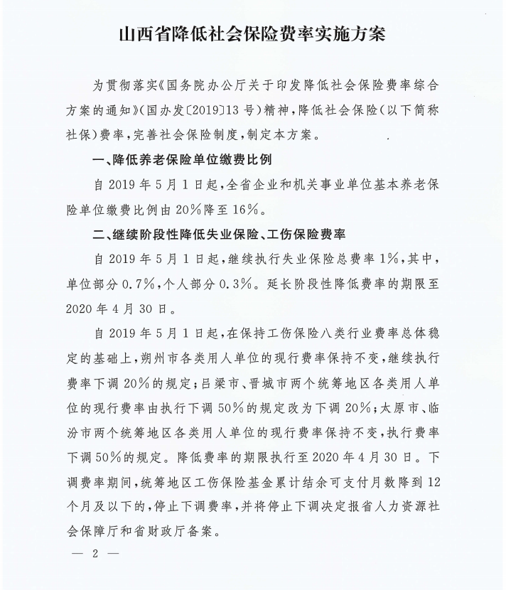山西省人民政府辦公廳關(guān)于印發(fā)山西省降低社會(huì)保障費(fèi)率實(shí)施方案的通知
