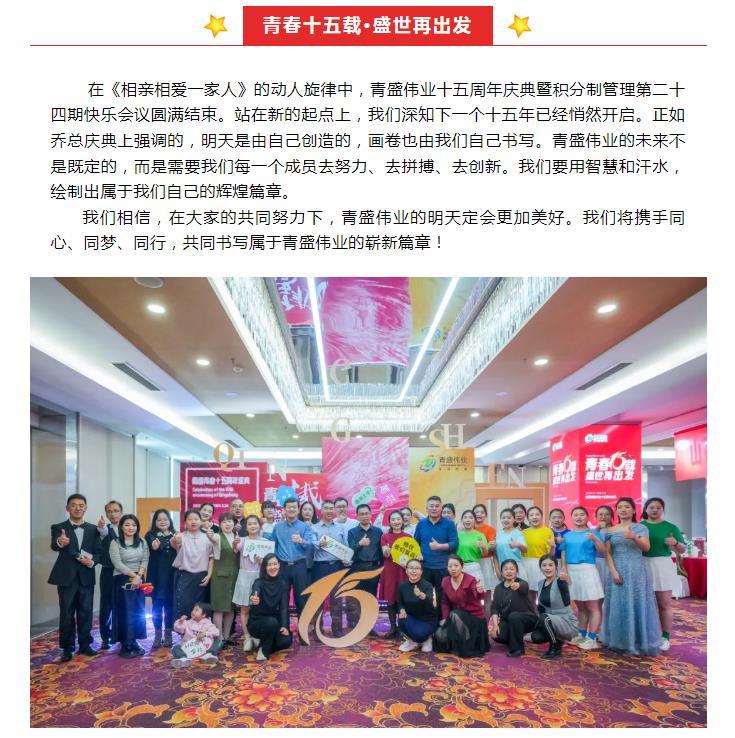 “青春十五載·盛世再出發(fā)”山西青盛偉業(yè)十五周年慶典暨積分制管理第二十四期快樂會議圓滿舉辦