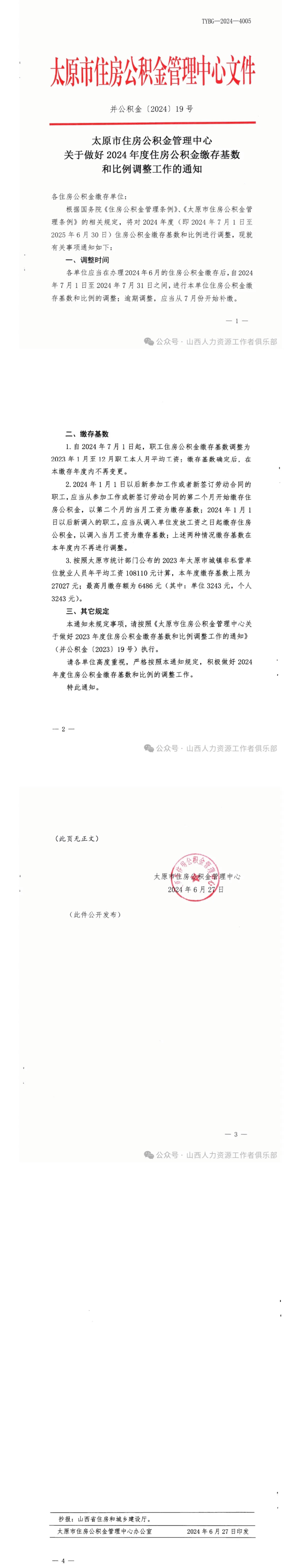 本通知未規(guī)定事項,請按照《太原市住房公積金管理中心關于做好2023年度住房公積金繳存基數(shù)和比例調(diào)整工作的通知》(并公積金(2023)19號)執(zhí)行請各單位高度重視,嚴格按照本通知規(guī)定,積極做好2024年度住房公積金繳存基數(shù)和比例的調(diào)整工作。特此通知。